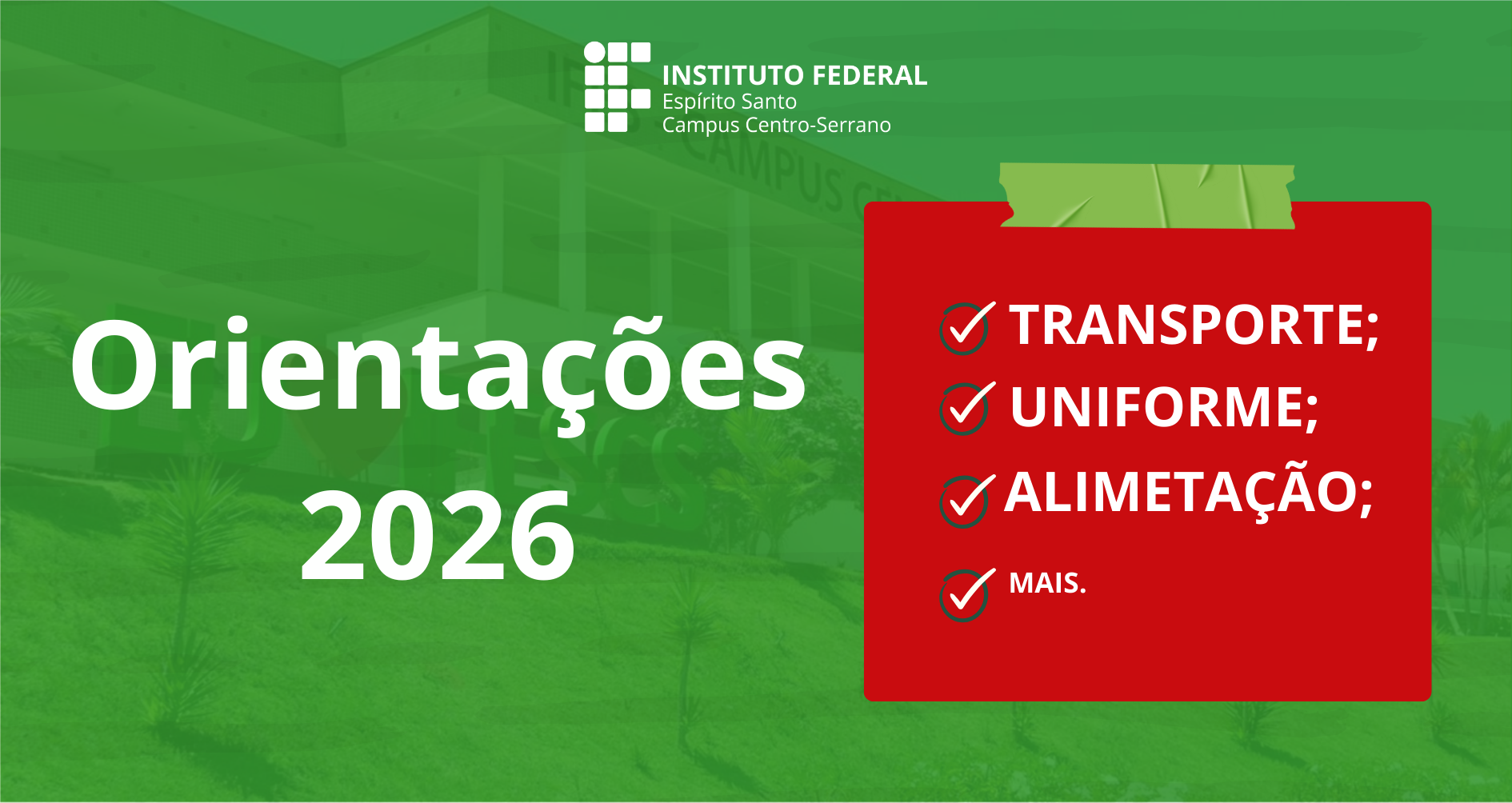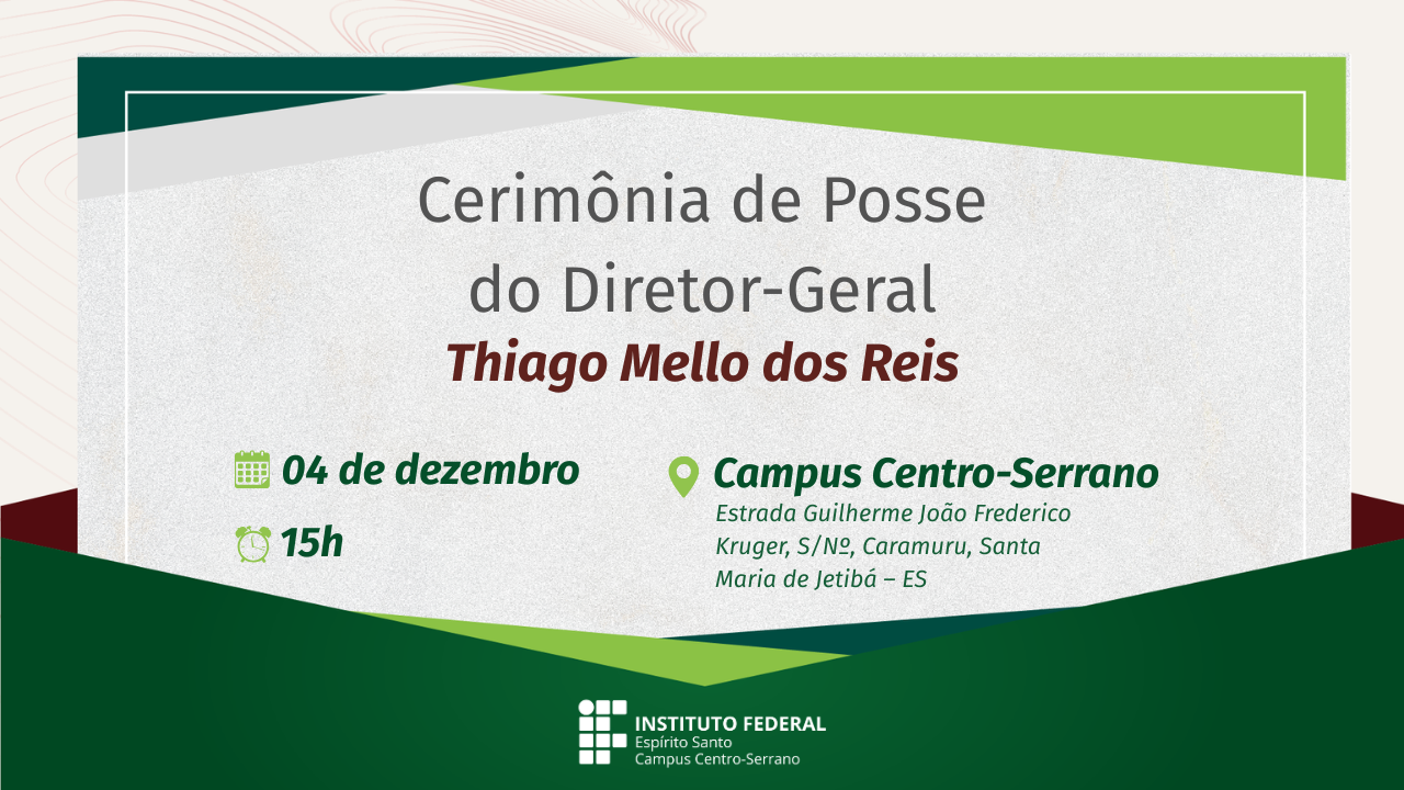 Nesta quinta-feira (04/12/2025), às 15h, no Auditório do Campus Centro-Serrano, será realizada a cerimônia de posse do novo Diretor-Geral, Thiago Mello dos...